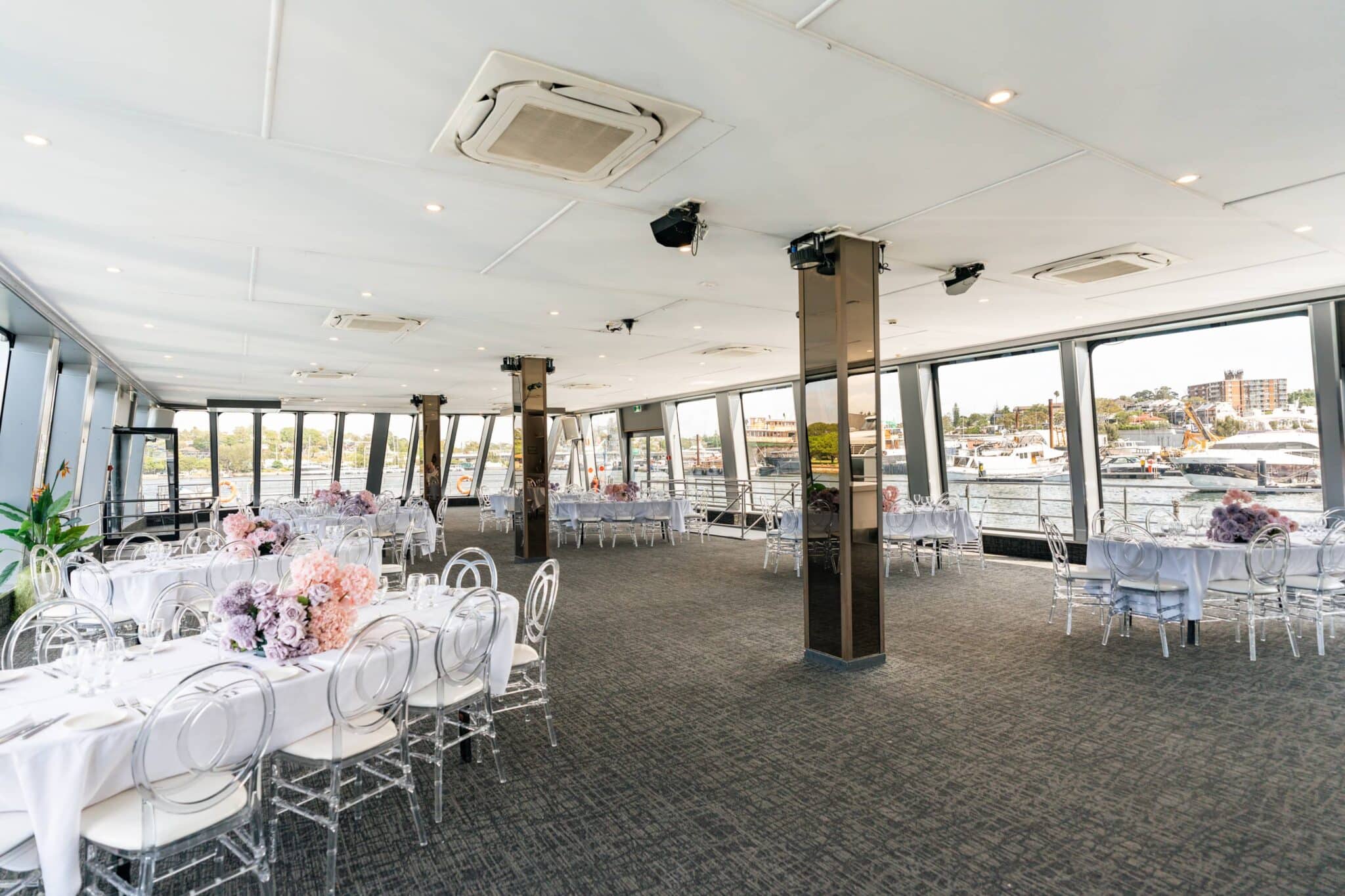 Designed and built by us at All Occasion Cruises, MV Bella Vista is our favourite floating glass ballroom. Her carefully designed open plan layout, accompanied by her wrap-around external decks and extraordinary upper sun deck makes her perfect for your next event!